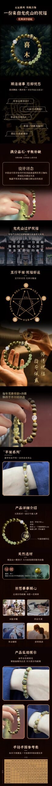 This wooden bracelet features green sandalwood as its core material, complemented by light green jade beads, transparent crystal beads, and gold accents, forming a Five Elements energy combination of “Wood as the dominant element, supported by Water and Metal.” Its core benefits can be summarized as “Career Advancement + Physical and Mental Well-being + Emotional Harmony,” and it is especially suitable for those who need to enhance their creativity and interpersonal skills.